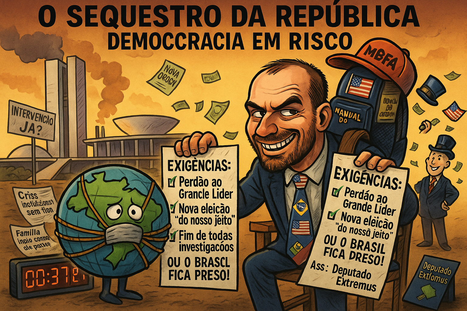 Eduardo Bolsonaro simboliza, com sua atuação, um Brasil sequestrado politicamente — onde pressões externas são convertidas em barganha interna, custodiada pela família Bolsonaro. Suas exigências por anistia e regulação de eleições ferem o Estado de Direito e judicializam o Executivo e Legislativo.